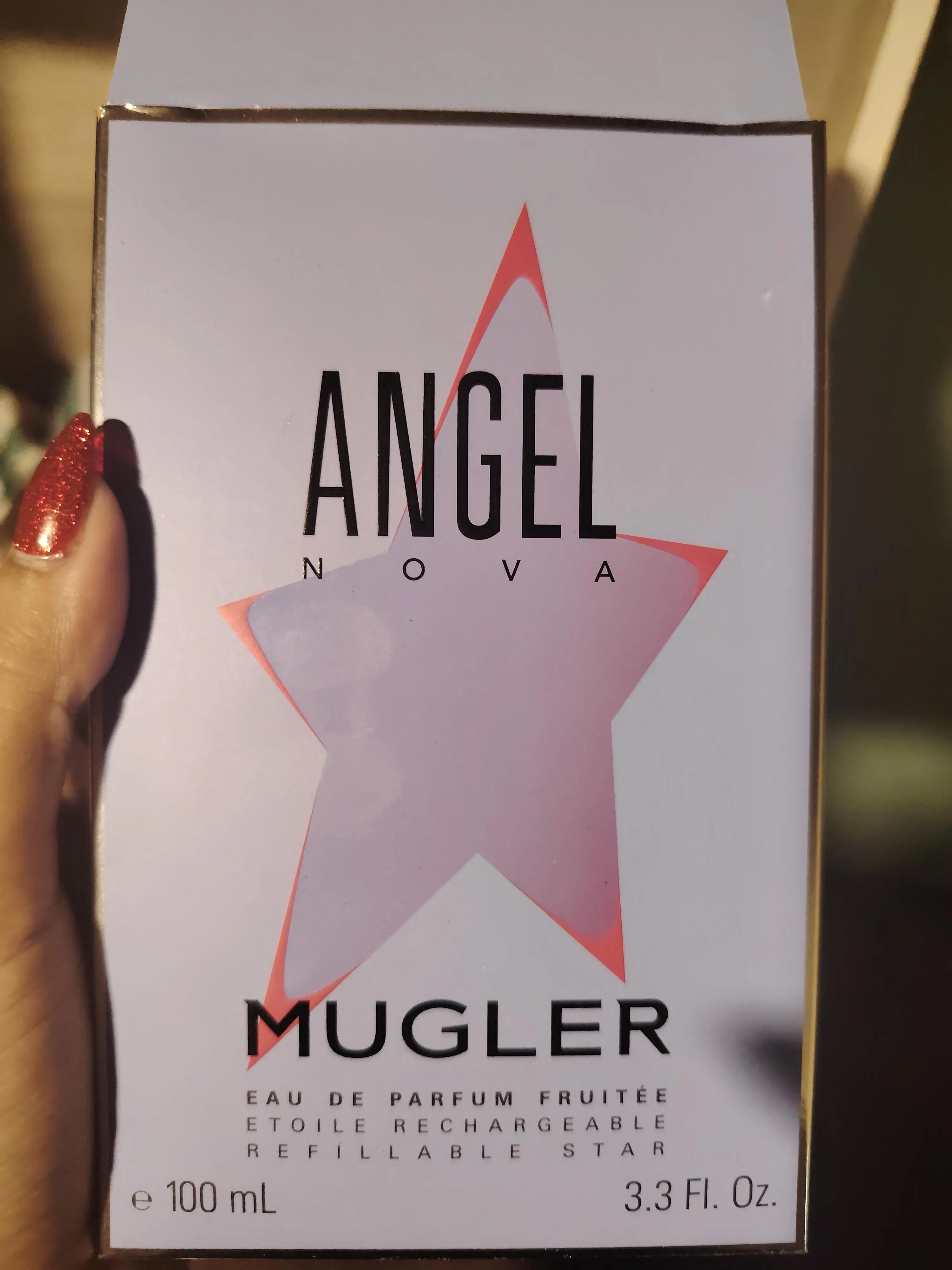 Angel Nova de Mugler es una fragancia de la familia olfativa Oriental Floral para Mujeres. Angel Nova se lanzó en 2020. Angel Nova fue creada por Sonia Constant, Louise Turner y Quentin Bisch. Las Notas de Salida son frambuesa y lichi; la Nota de Corazón es rosa de Damasco; las Notas de Fondo son Akigalawood y benjuí.