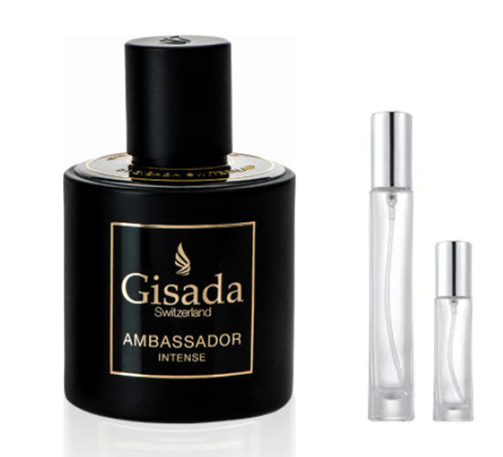 Ambassador Intense de Gisada es una fragancia de la familia olfativa para Hombres. Esta fragrancia es nueva. Ambassador Intense se lanzó en 2022. La Nariz detrás de esta fragrancia es Olaf Larsen. Las Notas de Salida son regaliz, cardamomo guatemalteco, nuez moscada, lavanda, incienso, pimienta rosa, elemí, jengibre, bergamota, mandarina y notas ozónicas; las Notas de Corazón son frambuesa, caramelo, canela, clavos de olor, geranio, jazmín, orquídea, heliotropo y fresia; las Notas de Fondo son haba tonka, vainilla, ámbar, pachulí, madera de cachemira, cuero, ládano, almizcle, vetiver de Haití y musgo de roble.