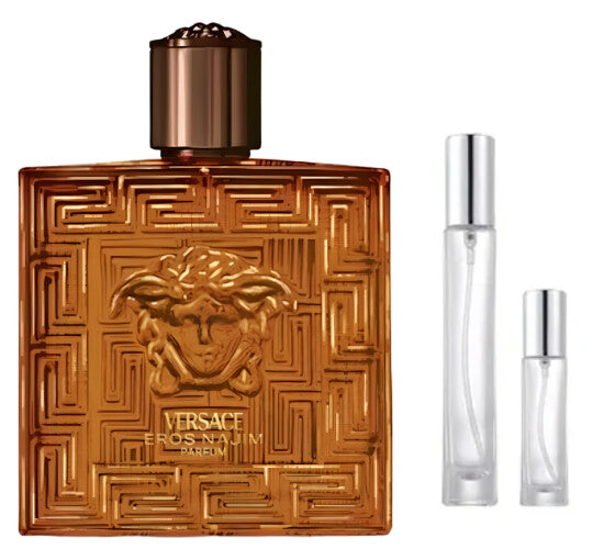 Eros Najim de Versace es una fragancia de la familia olfativa Oriental Amaderada para Hombres. Esta fragrancia es nueva. Eros Najim se lanzó en 2024. Las Notas de Salida son caramelo y mandarina italiana; las Notas de Corazón son madera de oud y cardamomo; las Notas de Fondo son incienso, pachulí y vetiver.