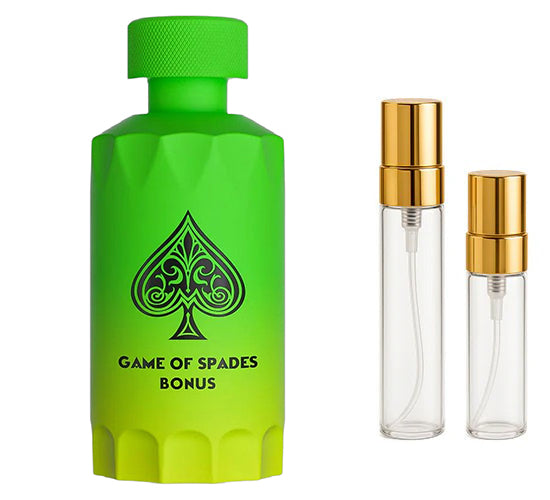 Game of Spades Bonus de Jo Milano Paris es una fragancia de la familia olfativa Cítrica Aromática para Hombres y Mujeres. Esta fragrancia es nueva. Game of Spades Bonus se lanzó en 2025. Las Notas de Salida son cilantro, grosellas negras, menta, cidra, naranja y limón (lima ácida); las Notas de Corazón son rosa de mayo, semillas de zanahoria, albahaca y chabacano; las Notas de Fondo son almizcle ambreta, higo y dátiles.