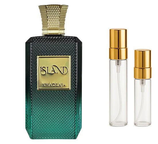 Island de Khadlaj Perfumes es una fragancia de la familia olfativa para Hombres y Mujeres. Island se lanzó en 2024. Las Notas de Salida son piña, iris, jengibre y ciprés; las Notas de Corazón son coco y notas amaderadas; las Notas de Fondo son haba tonka, ámbar, sándalo y ámbar gris.