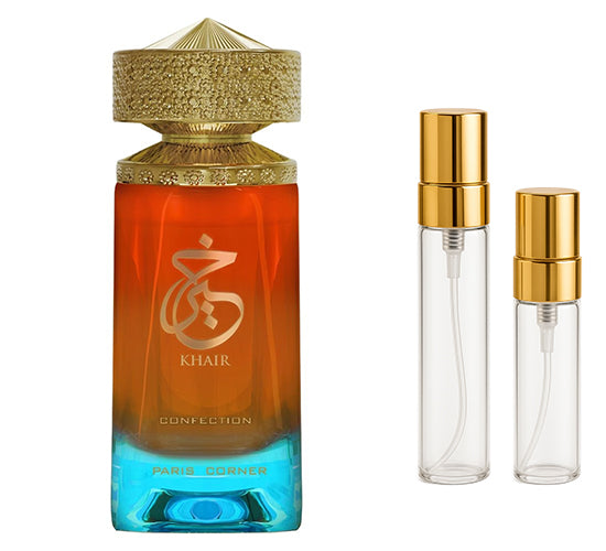 Khair Confection de Paris Corner es una fragancia de la familia olfativa Floral Frutal Gourmand para Mujeres. Esta fragrancia es nueva. Khair Confection se lanzó en 2024. Las Notas de Salida son pera y crema batida; las Notas de Corazón son cachemira, jazmín y ylang-ylang; las Notas de Fondo son vainilla, malvavisco (bombón) y sándalo.