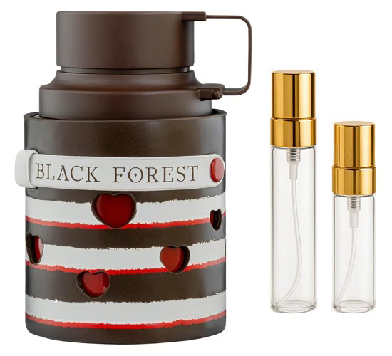 Odyssey Black Forest de Armaf es una fragancia de la familia olfativa Oriental Vainilla para Hombres y Mujeres. Esta fragrancia es nueva. Odyssey Black Forest se lanzó en 2025. Las Notas de Salida son caramelo, cereza, canela, Lactonas y flores blancas; las Notas de Corazón son dátiles, miel y nuez moscada; las Notas de Fondo son haba tonka, vainilla, praliné, almizcle y notas amaderadas.