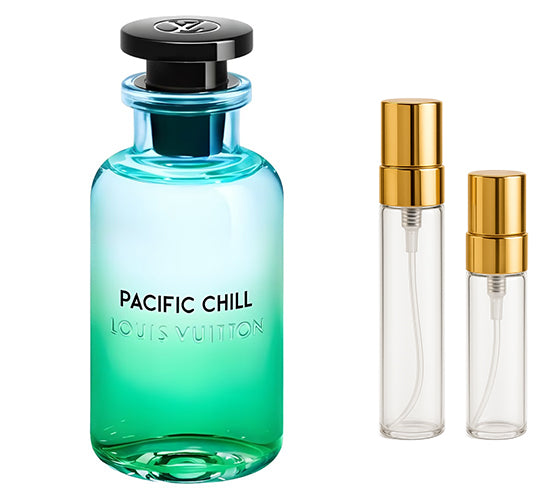 Pacific Chill de Louis Vuitton es una fragancia de la familia olfativa Aromática Frutal para Hombres y Mujeres. Pacific Chill se lanzó en 2023. La Nariz detrás de esta fragrancia es Jacques Cavallier Belletrud. Las Notas de Salida son cidra, menta, naranja, limón (lima ácida), grosellas negras y cilantro; las Notas de Corazón son chabacano, albahaca, semillas de zanahoria y rosa de mayo; las Notas de Fondo son higo, dátiles y almizcle ambreta.