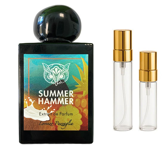Summer Hammer de Lorenzo Pazzaglia es una fragancia de la familia olfativa para Hombres y Mujeres. Summer Hammer se lanzó en 2023. La Nariz detrás de esta fragrancia es Lorenzo Pazzaglia. Las Notas de Salida son mango, piña, coco, bergamota y ron blanco; las Notas de Corazón son leche de coco, flores blancas y Notas marinas; las Notas de Fondo son almizcle, sándalo, ámbar y vetiver.