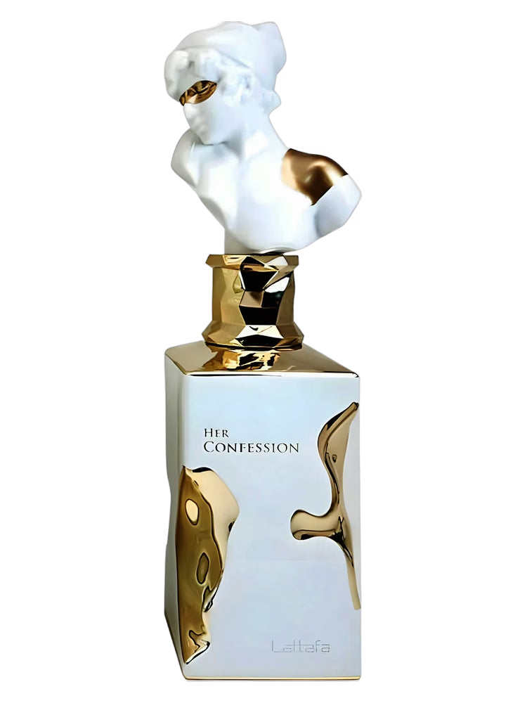 Her Confession de Lattafa Perfumes es una fragancia de la familia olfativa para Mujeres. Esta fragrancia es nueva. Her Confession se lanzó en 2024. Las Notas de Salida son canela y Mystikal; las Notas de Corazón son nardos, jazmín, incienso y Mahonial; las Notas de Fondo son vainilla, almizcle y haba tonka.