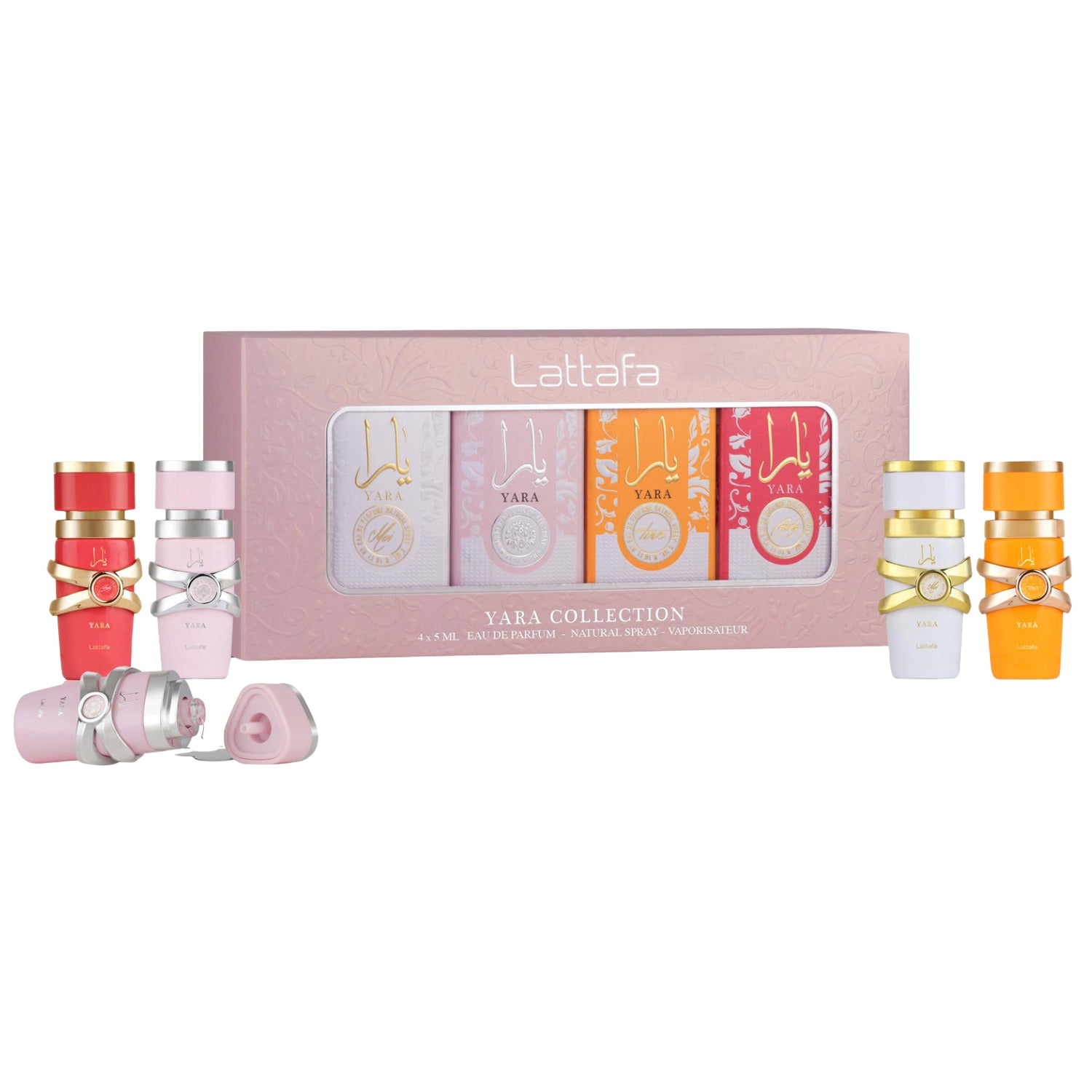 Descubre la magia de la colección completa Yara Mini Collection de Lattafa. Cuatro versiones únicas y cautivadoras de la icónica línea Yara, presentadas en prácticos frascos de 5 ml con atomizador.